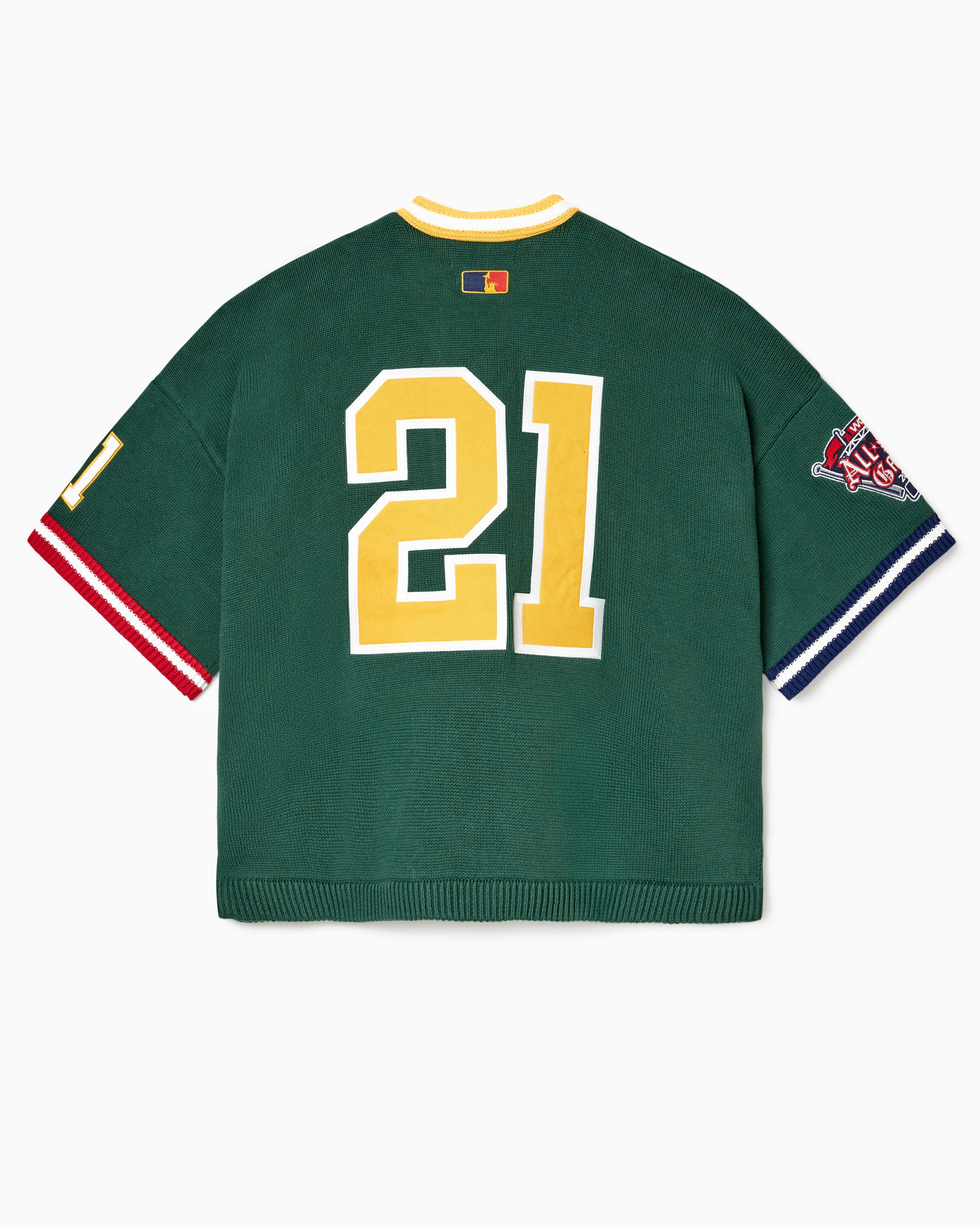 The Knit Baseball Batting Jersey blends nostalgic athletic style with modern tailoring. Designed with a slightly cropped, boxy silhouette and our signature drop-shoulder fit, this mid-weight 100% cotton jacquard knit jersey delivers breathable comfort and standout structure. The V-neck collar and rib-knit cuffs/hem nod to classic on-field uniforms, while the front features a bold “Wisdom of Age” tackle twill appliqué finished with a satin stitch. Custom embroidered number patches and WA logo details line the sleeves and chest, with a signature “NY Tough” hit at the back neck. Finished with our woven “W.O.A Sport” label at the hem for an authentic touch.